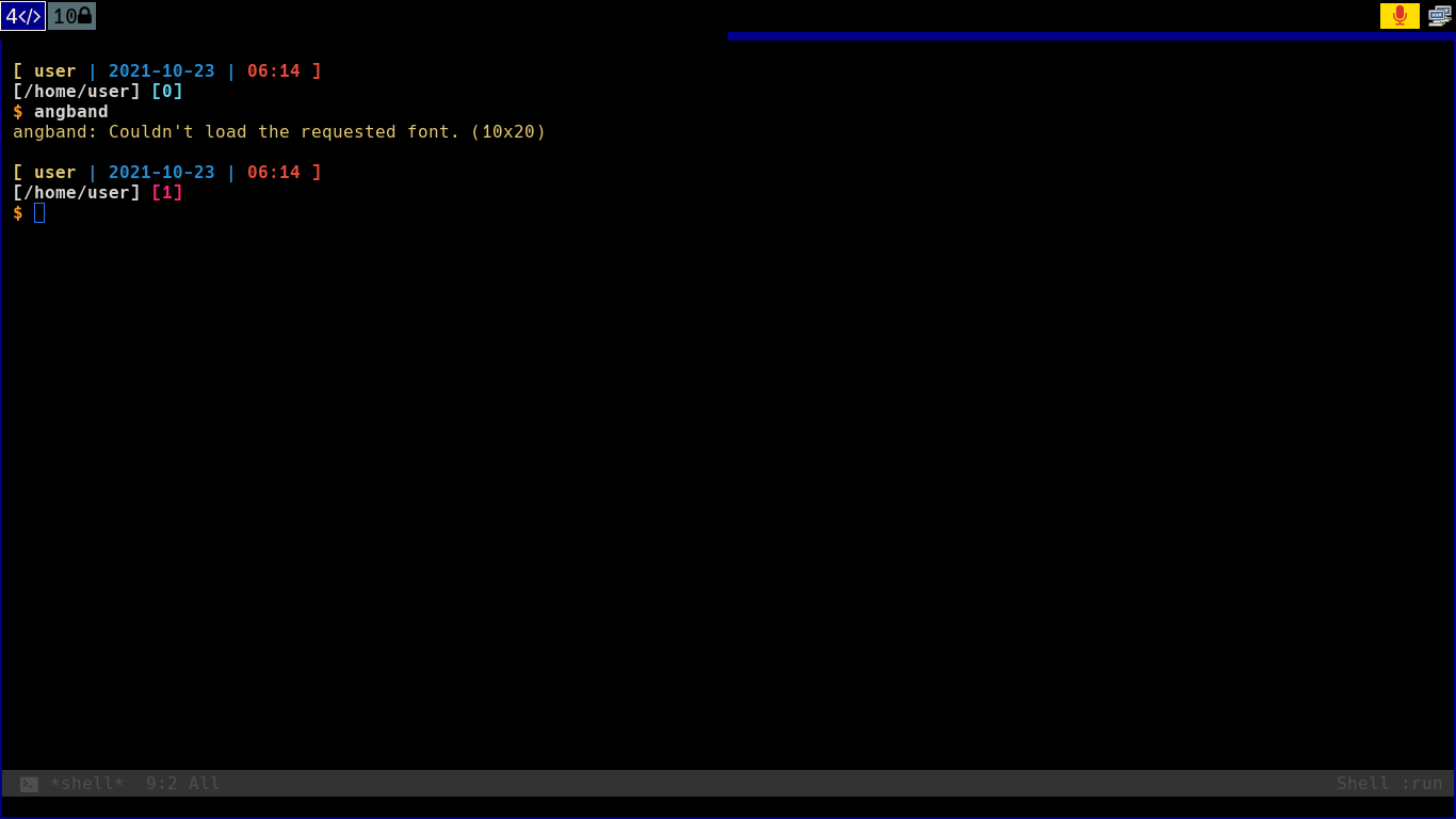 angband: Couldn’t load the requested font. (10×20)